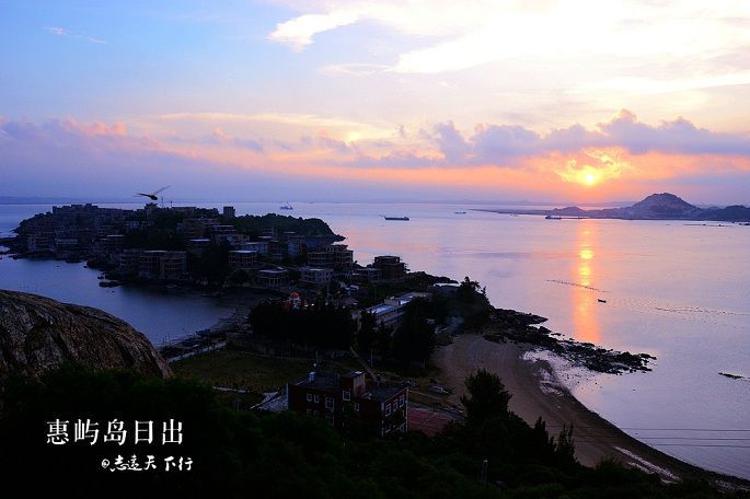 惠屿岛看日出,在南部的南尾山顶是最佳的观赏位置。从惠屿假日酒店后面新修的山路往山顶爬,不一会儿便到了观海亭,继续爬到山顶巨石处,静候着日出。