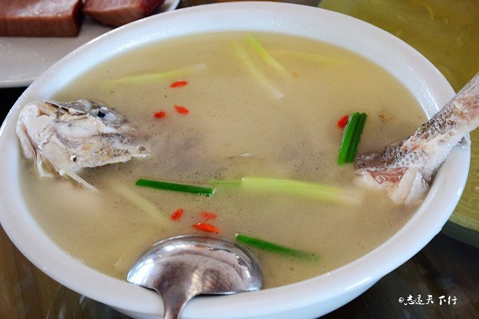 图60-图61,主菜少不了海鲜了。他们家的海鲜都是现捞现煮,开放式厨房,从捞起到上桌全过程客人都可以看到,自然新鲜。点了鲨鱼羹、海蛎紫菜煲、清蒸包公鱼、白灼虾姑、加腊鱼炖豆腐、炒海带...等等,加上酒水,人均60元左右。还是非常亲民的。