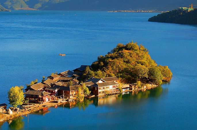 泸沽湖位于云南与四川边界,海拔2685米,是云南省最高的湖泊,风光旖旎,民风质朴,有“高原明珠”之称。云南一侧湖畔居住的摩梭人奉行“男不娶女不嫁”的走婚制度,所以泸沽湖又被称为“东方女儿国”。