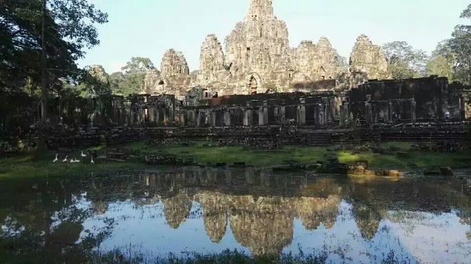 早餐后自驾车游览【大吴哥城区】:【巴戎庙】、【圣剑寺】、【女皇宫】,午餐后游览【小吴哥】,小吴哥游览完毕可自由活动,晚餐可以体验柬埔寨本地酒吧或者去酒吧街品味柬埔寨特色小吃。