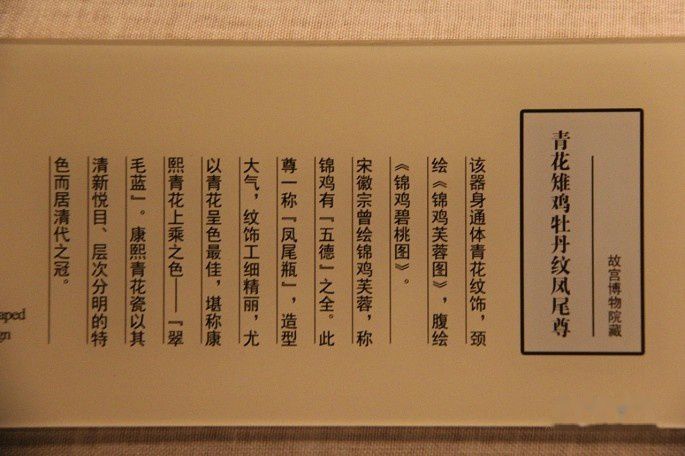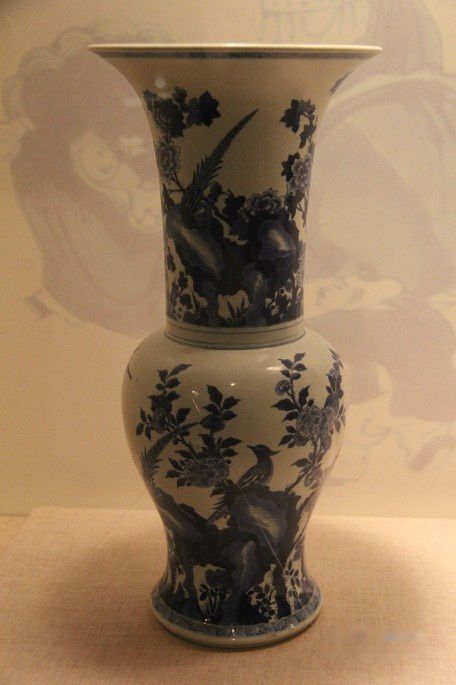 青花雉鸡牡丹纹凤尾尊,故宫博物院藏。