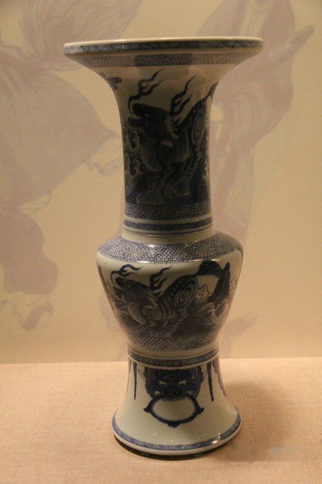 青花开光山水麒麟纹花觚,故宫博物院藏。
