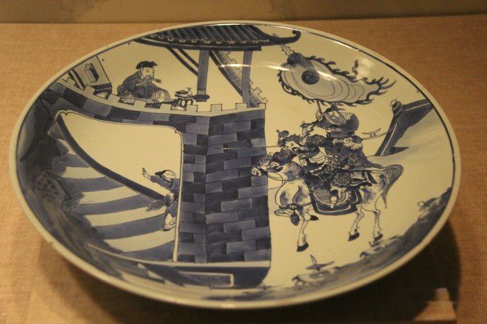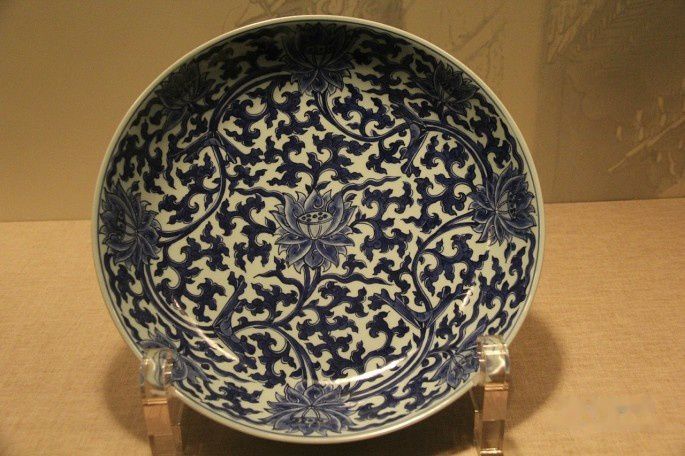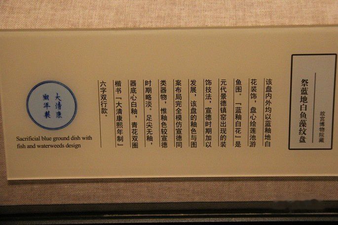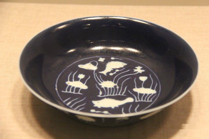 祭蓝地白鱼藻纹盘,故宫博物院藏。