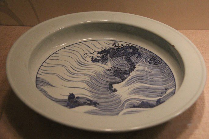 青花鱼化龙图折沿洗,故宫博物院藏。
