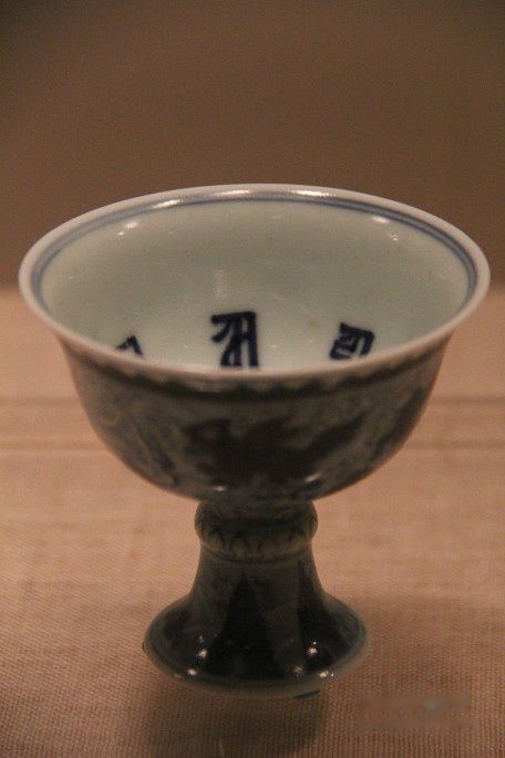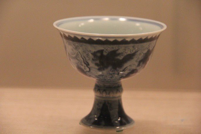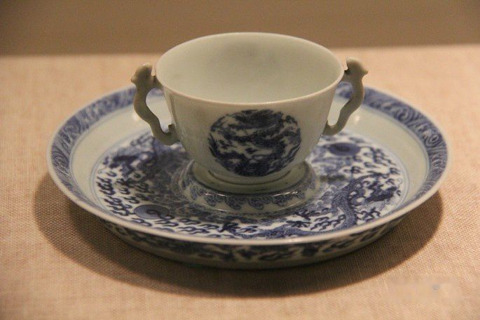 青花团龙纹螭耳连盘杯,故宫博物院藏。