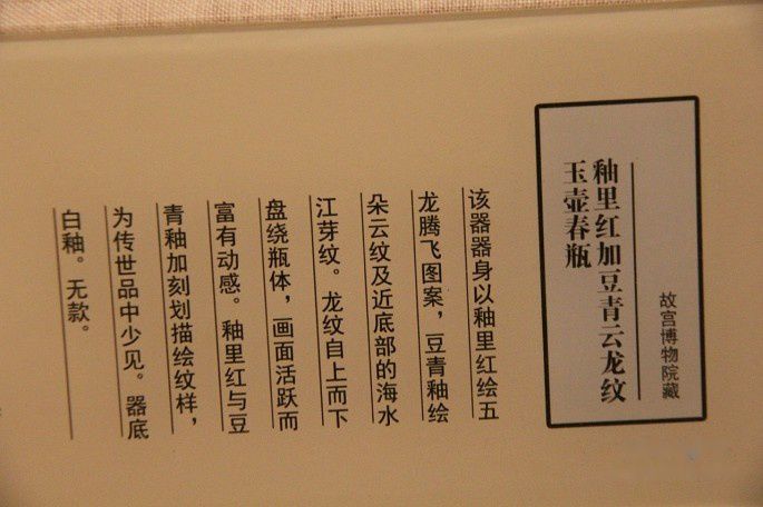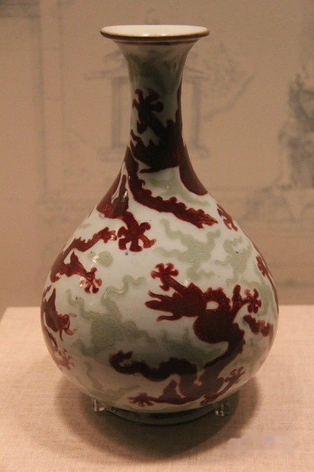 釉里红加豆青云龙纹玉壶春瓶,故宫博物院藏。