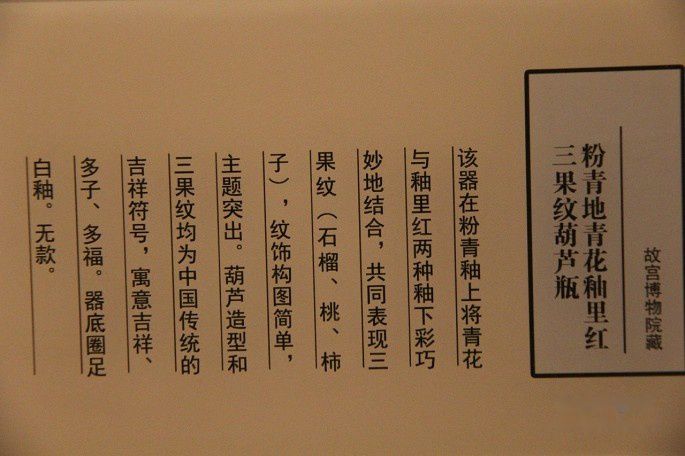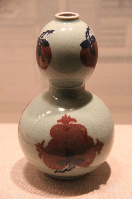 粉青地青花釉里红三果纹葫芦瓶,故宫博物院藏。