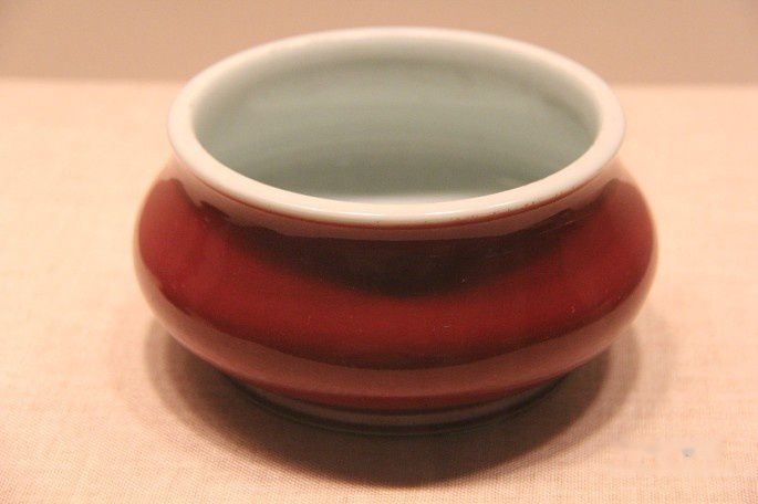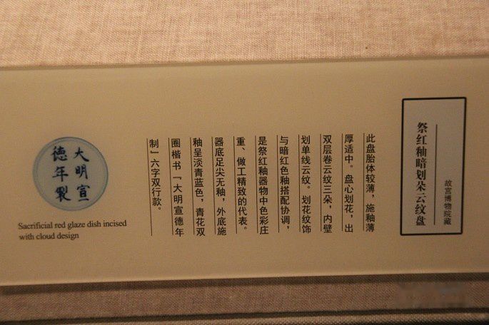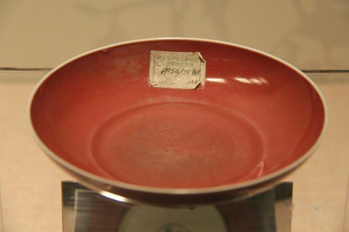 祭红釉暗划朵云纹盘,故宫博物院藏。