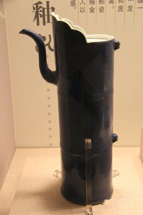 洒蓝釉竹节式多穆壶,故宫博物院藏。