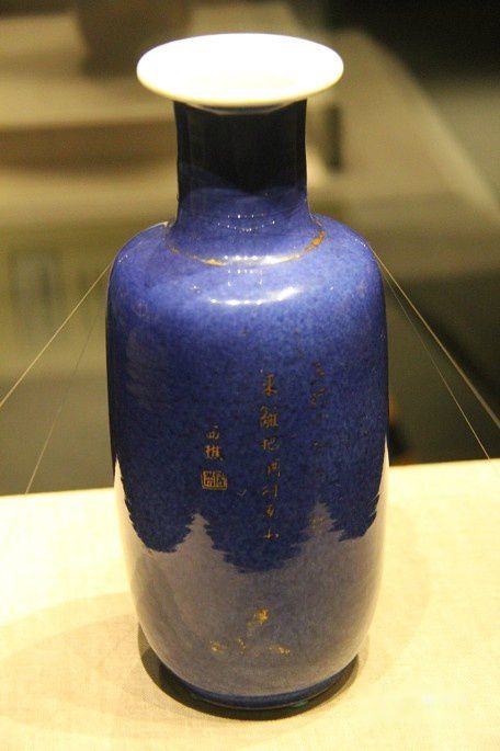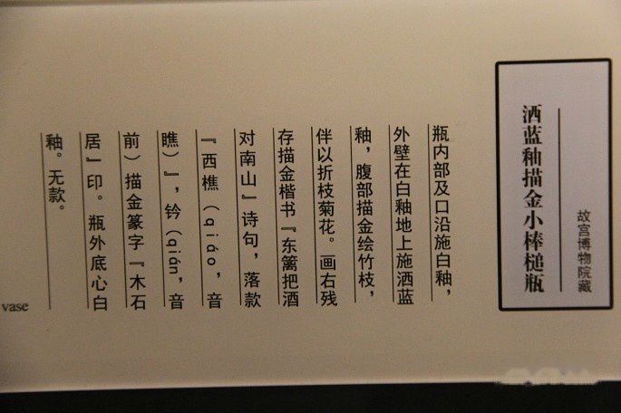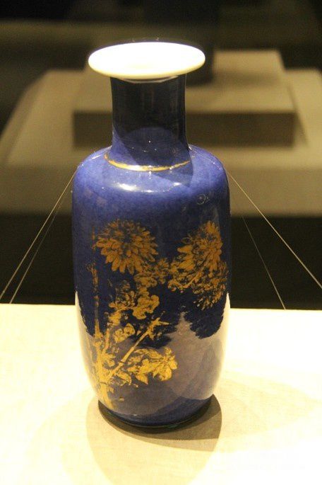 洒蓝釉描金小棒槌瓶,故宫博物院藏。