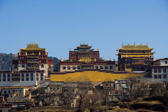 松赞林寺:噶丹•松赞林寺在云南迪庆,是云南省规模最大的藏传佛教寺院,在整个藏区都有着举足轻重的地位。由中甸县城向北5公里,佛屏山前,一组庄严、肃穆的庞大建筑群依山而立,这里就是清朝康熙皇帝和五世达赖所敕建的藏区十三林之一,云南藏区规模最大的藏传佛教寺院,也是藏区格鲁教派最负盛名的大寺——噶丹•松赞林寺。因其外观布局酷似布达拉宫,所以又有“小布达拉宫”之称。清雍正时又赐名“归化寺”。