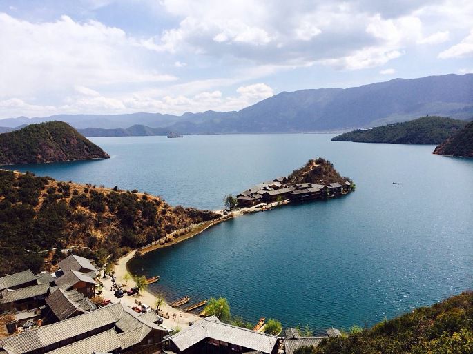 D1:丽江——玉龙十三峰观景台——宁蒗——泸沽湖观景台——游船登里务比岛——入住大落水的客栈