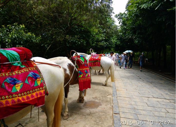 在界碑旁的小集市吃了所谓越南的凉粉和酸奶之后,坐景观大道返回出口处(也是入口)。对了,在景观大道往返53号界碑这一段路是可以步行,也有电瓶车和骑马的,坐车或骑马是得另外收费的。其实这一段路不是很长,道路平坦,而且步行的话,还可以从不同的角度俯瞰德天瀑布,因此个人觉得实在没必要花这钱去坐电瓶车或骑马,当然,如果有你钱你任性,乐意坐车或骑马,那就另当别论。