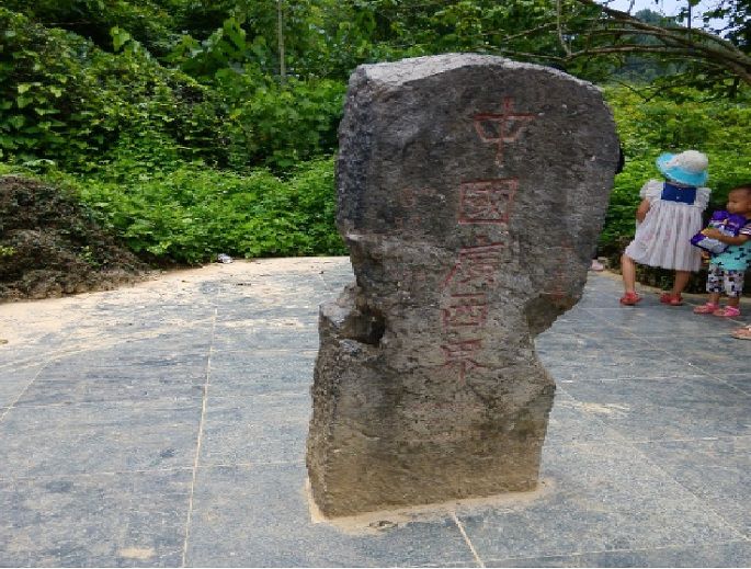 一路上行至所谓的景观大道,左拐前往著名的53号界碑。这是唯一一块立于我国一侧的界碑,是清朝时期立的,听说这界碑本来应该还要往越南方向前进几百米处立的,但为什么立在了我国一侧呢?据说是因为当时抬界碑的士兵喝了酒,嫌碑太沉重,几个人自作主张就近挖坑埋了办碑,于是成就了今天界碑旁的越南领土变成了中越两国的边贸小集市,来这里的人可以自由地点越南货,不用过海关边检,不用护照,倒有了点出国到越南了,哈哈哈……听说这里最有名是越南拖鞋,而且价格便宜,我们一路看到很多人手上都提了好几双拖鞋。与清朝时界碑与相邻的有一块2001年树立的835号界碑,界碑竖立在两级台基上,花岗石碑上越方刻着“越南”,中国这边侧为中文“中国”,不可免俗地在这“出国界碑旁留影以此证实自己确实到此一游了。