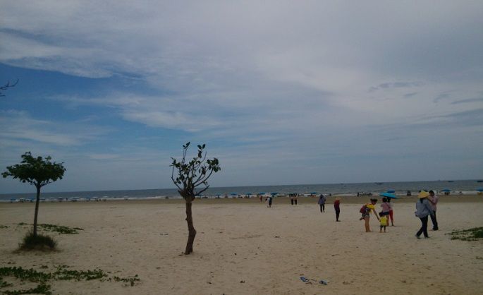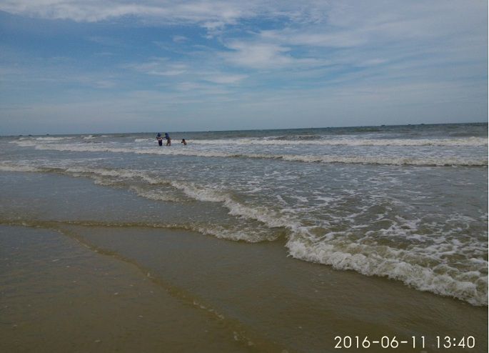 北海银滩以其“滩长平、沙细白、水温、浪柔软、无鲨鱼、无污染”的特点,被喻为“中国第一滩。不得不说,北海银滩的沙子真的很细很柔软,赤脚走在上面很是舒服。站在海边,吹着海风,心情无比的放松,感觉之前工作中生活中遇到的一切烦恼都被这浩瀚的大海带走了,这一刻留下的只有宁静。银滩上很多小螃蟹留下的活动轨迹,里面很多小小的洞,一看到有人经过,小螃蟹立即躲进洞里,特别敏捷,而它爬过的地方的沙子就像被捏出一个个小馒头,密密麻麻的。银滩之所以被称之为银滩,是因为在银滩的沙质洁白细腻,在阳光的照耀下反射出银色的光芒,故而称之为银滩。我们去的那天天气不是很好,太阳被乌云层层阻隔,还没有出来,海水也并没有我们平时见到的那种蓝色,反而看上去有点灰蒙蒙的,当然也就没见到那种银光。