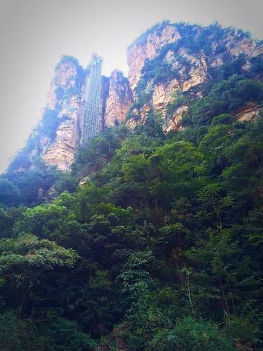 百龙天梯358米的高度,2分钟便能从山顶下到山底。据说是世界上最高,运行速度最快,载重量最大的电梯。
