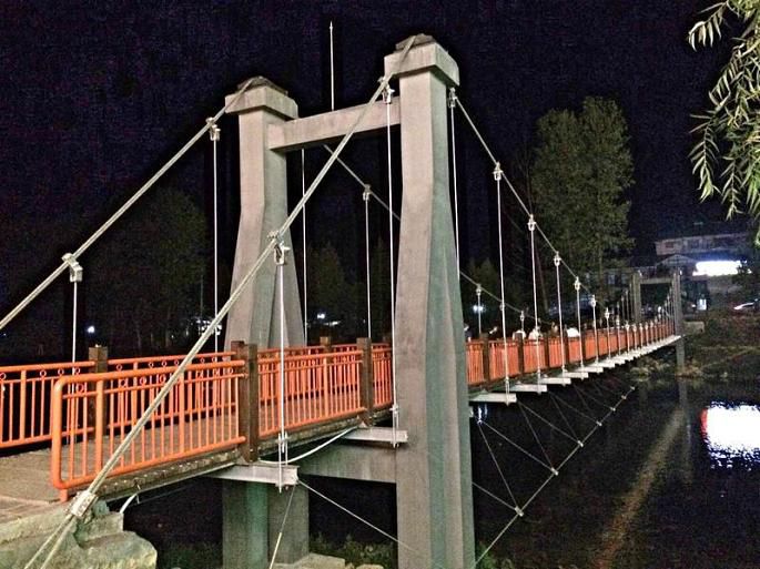 走过红军桥。苦不苦,想想红军两万五。累不累,想想革命老前辈。