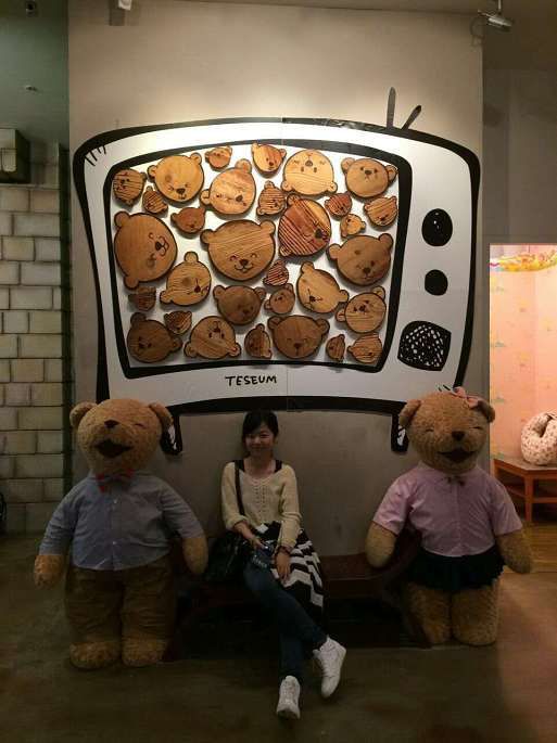 因为是跟团的,所以景点没得选择,第一站是泰迪熊博物馆。一上车,我们导游就跟我们打预防针,不要想象韩国的景点会跟中国的一样那么大气,特别不要跟张家界做比较(这大概源于韩国人喜欢到张家界玩吧),从第一站开始就体现了这一点,是个拍照的好地方,还有就是,泰迪无敌贵~~~