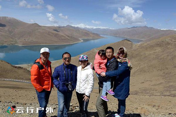 到了拉萨后,第二天又前往西藏三大圣湖之一羊湖,全体成员在羊湖前合影