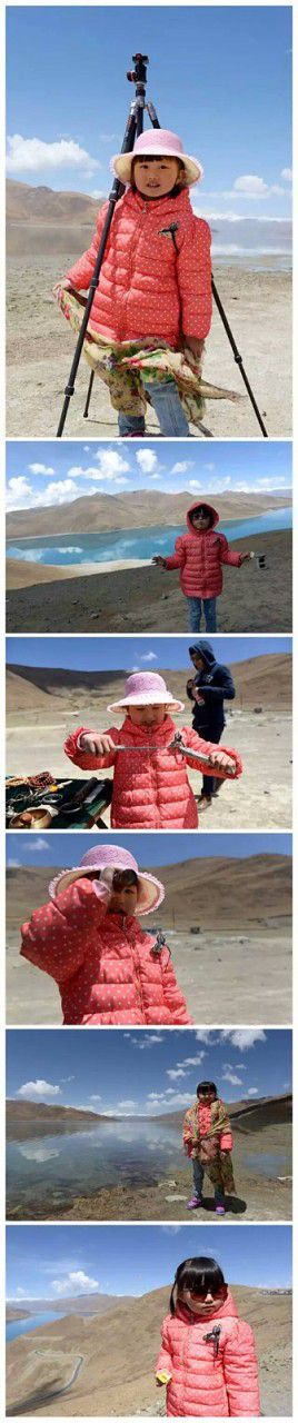 爸爸妈妈带着小宝宝兴奋的在羊湖前跳跃,这里的海拨约4200米左右,经过一周从丽江到拉萨的长途跋涉,已经完全适应高原,所以就算在4000多米的地方,也已经没有高反了。