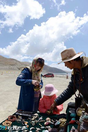 羊湖傍卖工艺品的小摊