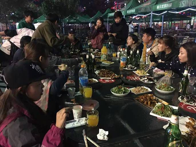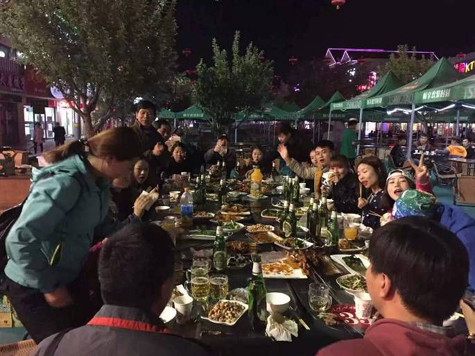 只是回到酒店还不够,还得吃,于是,我们哈雷户外队员二十几人就把人家的地盘占了一半