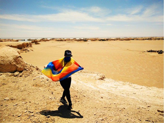 顺着柳格高速一直走,直到中午才到“水上雅丹”,到了这里,好多人都激动了,大大的太阳,好晒,赶快去拍完照到车上去凉快