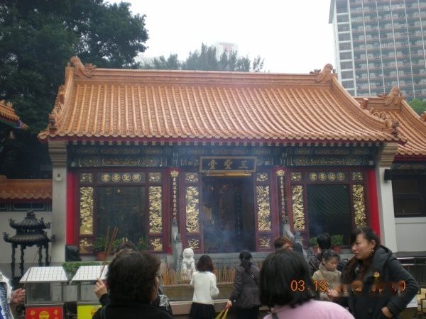 早起坐地铁去黄大仙 庙,虽然我本人不太信这个,但毕竟入乡随俗嘛,黄大仙那么有名,怎么也应该去看看,而且正好是我去将军澳的途中,顺路嘛,在庙外请了一把香,9支,人家说 上香以1支或3支为宜,正想着怎么把香都贡了呢,进黄大仙后才发现,根本不用我考虑这个问题,因为里面有3处上香的地方,一处3支,正好用完= =