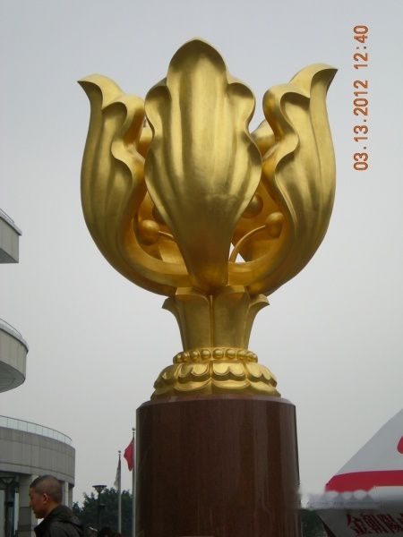 坐地铁到湾仔,出来后走人行天桥,七拐八拐后,我终于迷路了,陷在香港会议展览中心里出不去了,转悠了大概20分钟才从一个小边门里出去到博览道东,再往海边走,终于看到了那朵金色的紫荆花,果然是景点,游人就是多= =赶紧抓拍了两张就绕到后面的香港回归纪念碑去了,正好赶上那段路修路,挺不好走的,离的近,碑又高,我仰着脖子照了两张就回来了,说实话,我对碑啊什么的没什么兴趣,就是去了,该看的总得看一眼= =