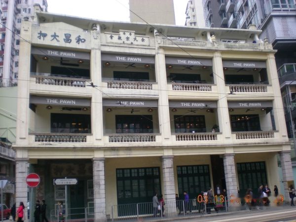 从金紫荆广场往南走,沿着庄士敦道走,完全是凭感觉往中环走,因为路标上显示的是多少号到多少号,而并没有像天津的 路线牌,告诉你前面的路口是什么路,如果我方向走反了,就抓瞎了。其实走到小马路的时候,上面有路牌,也许是因为马路太小了,我的地图上并没有显示,所以 对我一点儿帮助也没有。。。庄士敦路到头后就变成轩尼诗道了,因为路不熟,我也不敢随便拐进小马路,就沿着大路走,正好看到了“和昌大押”,这真算是瞎猫 碰见笨老鼠,我当初看攻略的时候,还想着去看看和昌大押呢,结果看路线偏离了我的主道,就打消了这个念头,没想到无意中却走到这里来了。