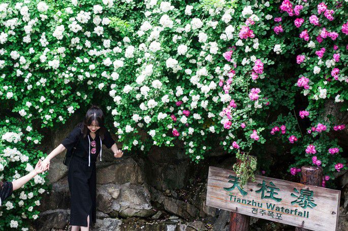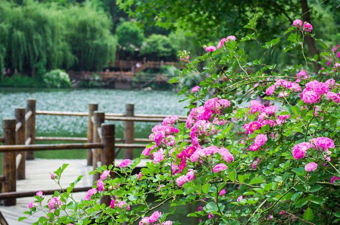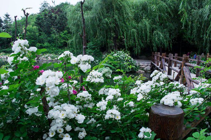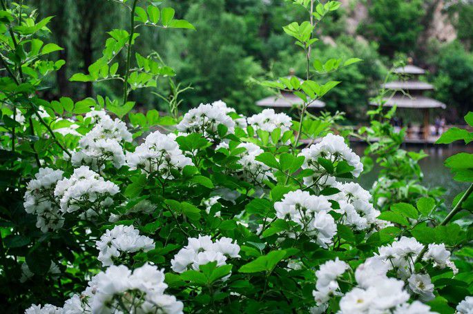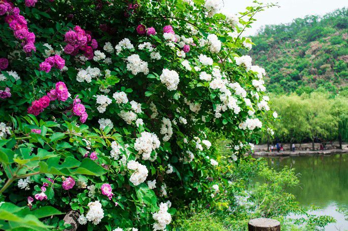 明代顾磷曾经赋诗:“百丈蔷薇枝,缭绕成洞房。密叶翠帷重,浓花红锦帐。”