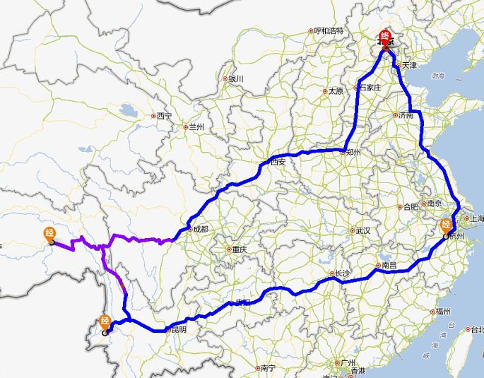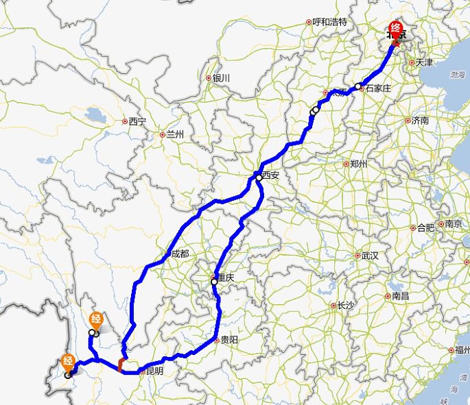 北京-河津-绵阳-雅安-华坪-丽江-腾冲