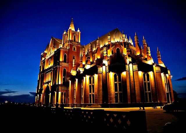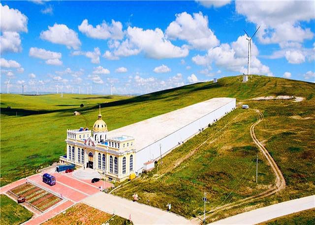 欧式旅游观光婚礼宫位于内蒙古呼伦贝尔市满洲里市东山植物园内,建筑面积近20000平方米,东西长97米、主体宽32米、建筑高度37米,主塔楼高55米,大厅面积近3000平方米。
