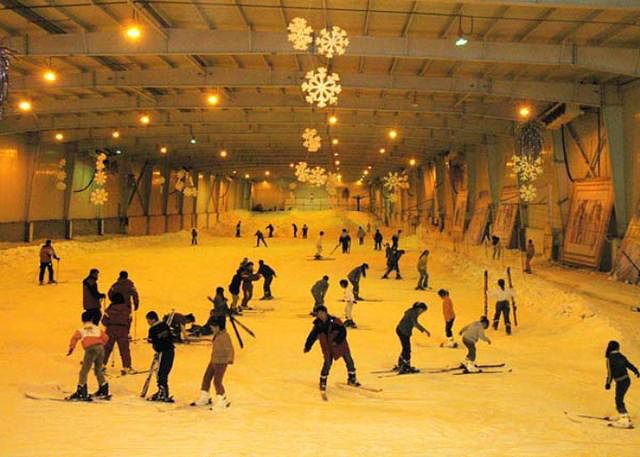 接待大厅内加设隔热层,隔热层外便是室内滑雪场。整个雪道长198米,分中级和初级两条滑雪道。上部宽30米,底部宽45米,滑雪面积约8000平方米,可同时供300余人滑雪。