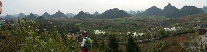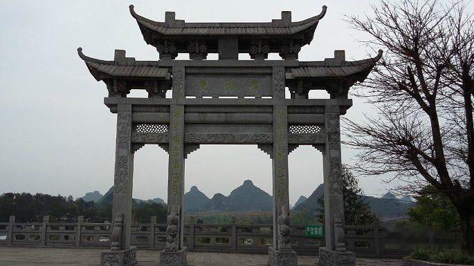 中午1.30左右我们在贞丰县者相镇的三岔河湖畔纳孔村吃的农家饭。离双乳峰不到三公里。纳孔村是纳尼族村寨,据说有600多年的历史,但因为观察了解不深入,没有体会到明显的民族特色。村口那面建筑墙倒是比较有特点。