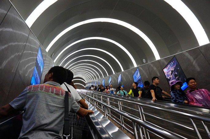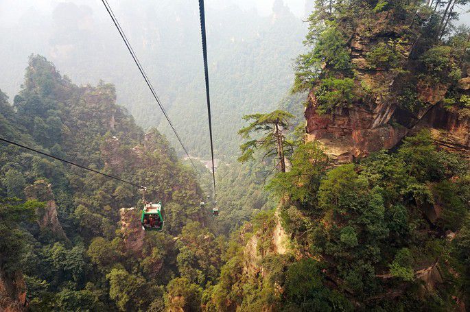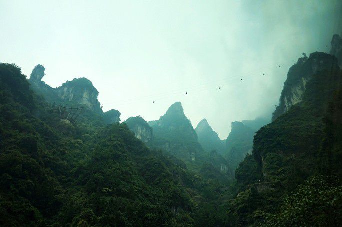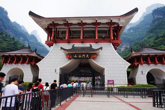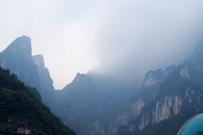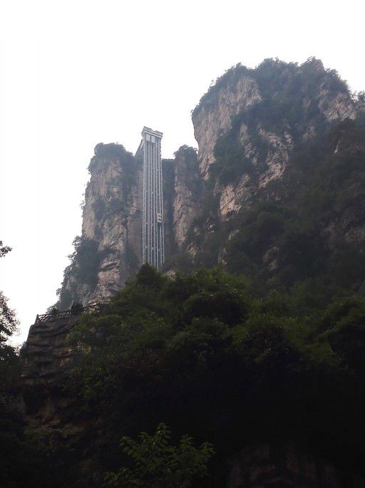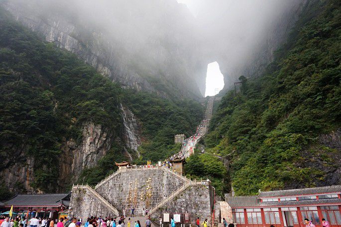 5段电梯到达天门洞,然后再7段电梯到达山顶。