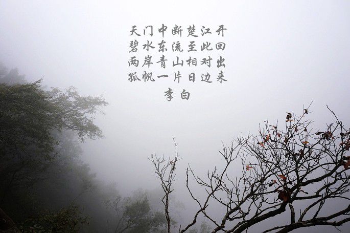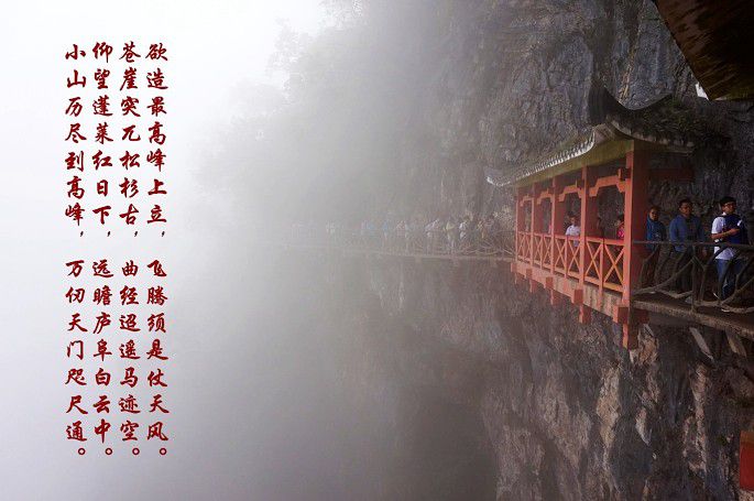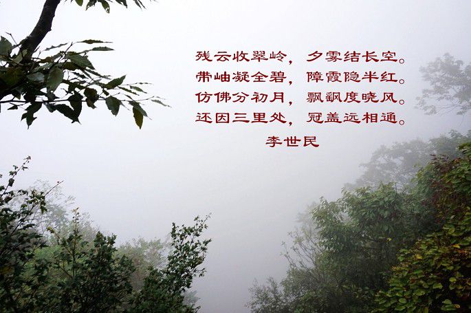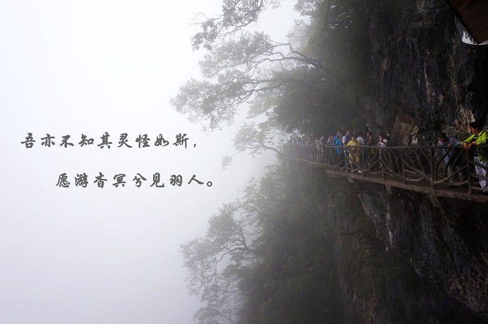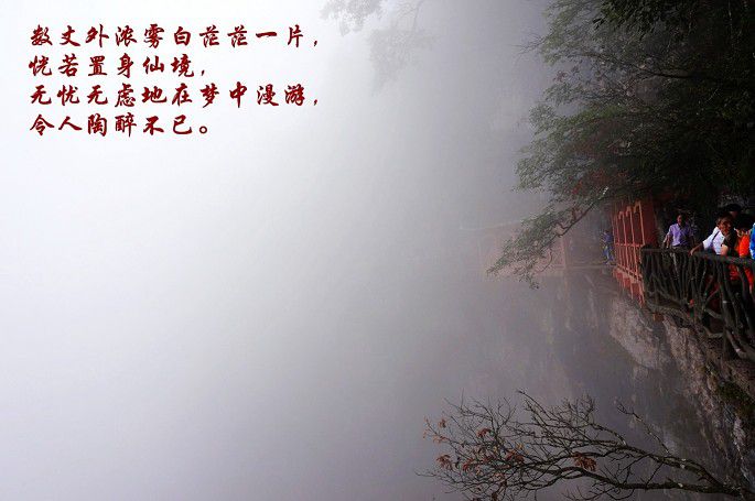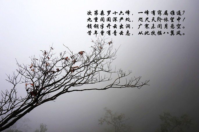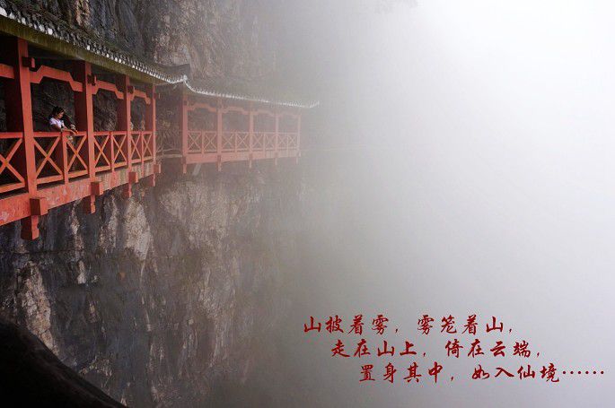 云雾缭绕~拍出来的照片有些单调~于是,加了些诗词作点缀~