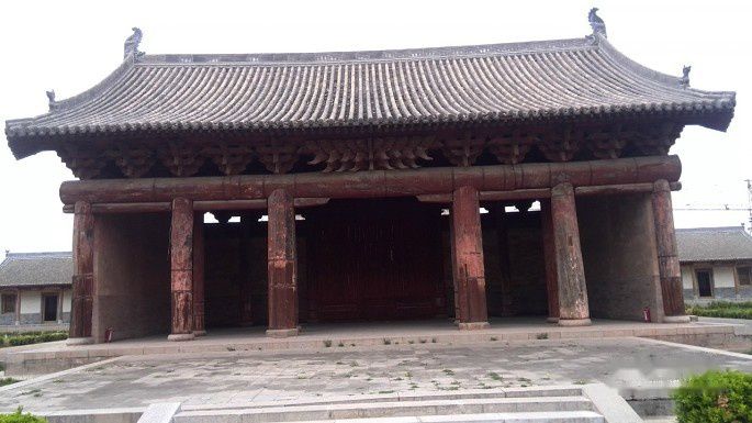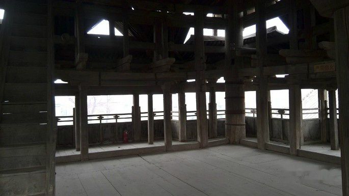 进县衙,发现三堂后边还在垒城墙。里面有文庙影壁,二堂、三堂没啥子,大堂绝对的惊艳——粗柱硕拱,用料独特,营造法式奇巧,典型的元代范,感到些许蒙古骑兵飙雄的味道。第一次见到这样的元构建筑,享受啊~~~