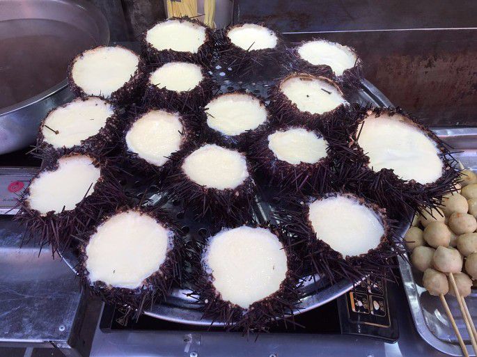 走进去才发现原来是一个小吃街,房子都是低矮破旧的,看到了一个很好奇的东西,叫龙胆蒸蛋,看着样子,像鸟巢。其他海鲜类的也很多,只是大清早的,实在不想吃。