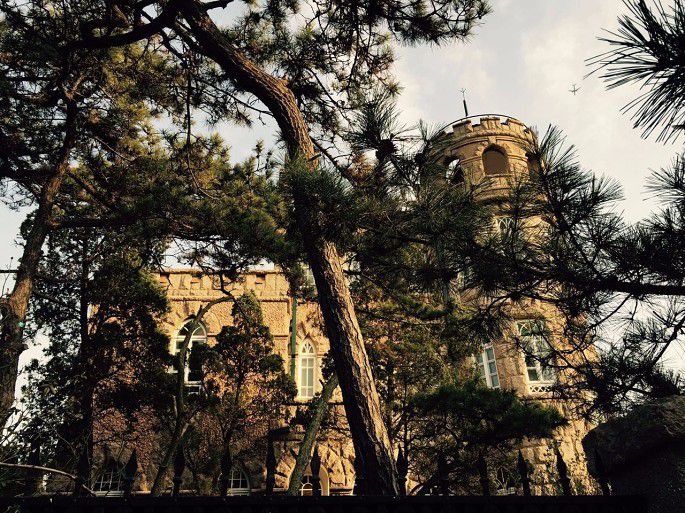 出来以后沿着龙山路走就可以看到青岛迎宾馆,也叫胶澳总督府。淡绿色的墙饰,淡灰色的花岗岩石,让人一眼望去就有豪华高的气息。