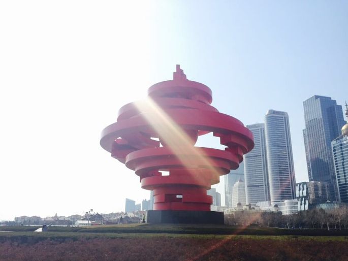 到了马路边坐公交车,查的百度地图到市政府下车,后来看到也有五四广场站,广场上可以看到红色的螺旋式小建筑,不过还是先安慰我的胃。