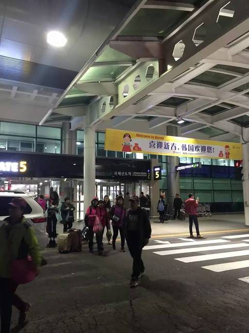 我是两家人从天津出发,直飞济州岛,到达济州岛要大概两个小时,出关都很顺利,(PS:但看到有被海关带走做进一步询问的,最后有没有入关不得而知!)出了机场到达5号门出口,就看见一排等待接机的,放眼望去一眼就看到举着漫韩网的接机牌,很顺利找到了接我们的人。接下来就在司机小金的带领下直奔济州市酒店。大部分人都是选择在北部济州市住宿,因为交通,吃饭,购物等都很方便,机场,市区,乐天免税店和新罗免税店也都是在北部济州市的。由于到达济州岛的时间已经是晚上22:50了,早已把在机场吃的简餐消失殆尽了。本来司机接机送到酒店以后,就可以下班了,可是老公硬是拖着司机带我们去一起吃了夜宵,(官话还是要讲的;说是请司机吃夜宵,哈哈哈)当然司机人也是非常的好,憨厚老实,“故意”表现很感动,哈哈哈!(俩人一对影帝)