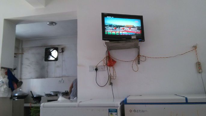 从标志广场下完一条很陡的高坡,就是特别特别腥的南湾海边,路边就看见好几家租车点了,还有酒吧、小清新客栈、餐吧。我们在南湾市场头头入口下了车(注意:路口这里有个不起眼的ATM,不过我没用成,不懂现在修好没),从里面(两边都是海鲜餐馆)的路而不是沿海的大路走向市场(come on~follow me~~),在路尽头处的一家小吃店解决了午餐。忘了店名字(好像没名字,就是个立着“小吃 糖水 加工海鲜”的招牌),提它是因为我们有两顿饭是在他家解决的,环境是很白净的私人房,开放性厨房、两三张方桌、墙上有电视机、旁边的门推进去就是房间卧室,给一张店内图:
