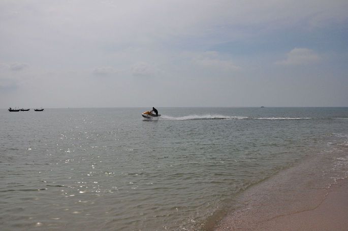 不过石螺口景点这就有饭馆、有躺椅和太阳伞、泳圈等出租,更有更衣室和淡水淋浴。每人花10元占用一把躺椅,换了泳衣就开始自游徜徉,等着日落啦~~~这里的海很平缓,很多摩托艇拉客,海水浑浊。。。