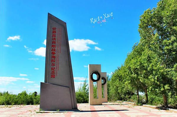 北京到海拉尔火车经过了近30个小时的长途跋涉,6号12点我们准点到达海拉尔站。电话中得知,小超的父亲早已经在车站外等候了。大家见了面相互打完招呼,搬行李上车,我们决定先去附近店里吃中餐,在海拉尔不做停留。待我们吃饱喝足后,王师傅便载着我们出发了。伴着降央卓玛那悠扬浑厚的《请喝一杯下马酒》的歌声,我们穿越海拉尔市区向金帐汗和额尔古纳市进发。开始了我们真正的草原之旅……D1.海拉尔 --世界反法西斯战争海拉尔记念园--金帐汗--额尔古纳 今天大半天的行程全都安排在草原腹地。车向前行,晴空万里。很快前方看到了连绵起伏的山丘,车绕过一座山丘后,沿着一条坡度很大的路开了上去,山坡上矗立着坦克模型和持枪冲锋的战士雕塑,此行的第一站世界反法西斯战争海拉尔纪念园到了。世界反法西斯战争海拉尔纪念园位于海拉尔城区北部,定位为国家5A级战争主题公园,总面积110公顷,是在原侵华日军海拉尔要塞遗址上建立的,是集爱国主义、国际主义、革命英雄主义为一体的军事主题红色旅游景区,是国内少有同类题材主题公园之一。