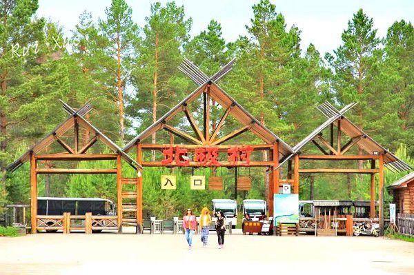 北极村其实是漠河县下面的一个乡。据说北极村的由来是因为1997年3月9日9时许,漠河地区出现日全食和海尔--波普慧星同的出现的“世纪性奇观”。有3千多位中外专家和天文爱好者与8万多名漠河居民冒着严寒在现场观看这一宇宙奇景。当时哈尔滨还专门开出了赴漠河观星之旅专列,漠河一度成为世界瞩目的“天文之都”。从此,吸引越来越多的旅游者。 北极村是位于中国北部的一个边陲小村,与俄罗斯阿穆尔州的伊格娜思依诺村隔江相望。素有“北极村”,“不夜城”之称。由于紧挨黑龙江边,加上纬度是我国国内最高的,得天独厚的地理优势,使这里的商业气氛极浓。北极村不能算是中国地理上的北极点,也并不是最北的村落。“最北”不过是为旅游而设。村里吃住的地方都很多,几乎家家户户都办家庭旅馆,在建的旅游项目比比皆是,估计过几年再来就已经是个繁华的都市村庄了。其实北极村现在俨然也是一个发展很成熟的景区了。 到达北极村景点大门。我们的车被拦在门外,要买门票,60元/位,车不能开进去,否则要另付300元钱。