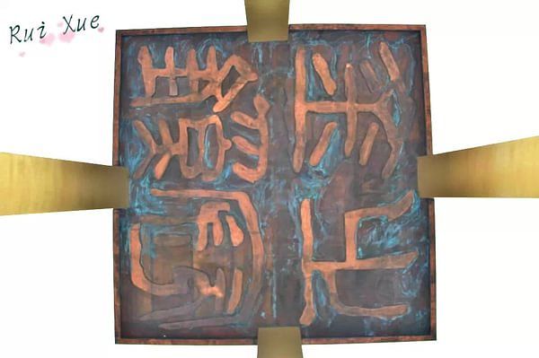 中国的地图像一只公鸡,漠河北极村处于鸡冠的位置,所以这里弄了个金鸡之冠的大印,造型仿帝王的玉玺,在地面上印出“金鸡之冠”四个篆字。这个就是金鸡之冠。