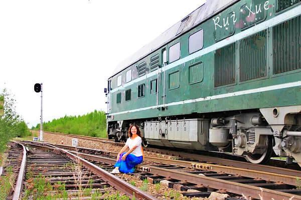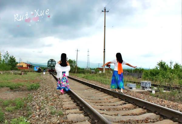 4.北极村---漠河---满归 我们从北极村返回漠河,同样遇到路段整修。但这次小超车开的很稳,很轻松的驶过。 突然看到一处交叉火车轨道,我们兴奋起来,立马停车,又是一阵狂拍。