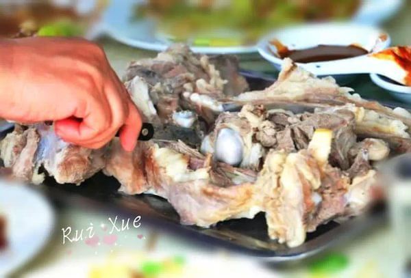 从白桦林出发,途中我们依然乐此不疲地欣赏着路边的景色。忽然间恍然大悟: 草原无处不胜景。其实来草原无须看更多的景区,单是随意走走,路边的景致也足以让人沉醉不已。 由于中途没有用餐的地方,我们准备在黑山头和晚餐一起解决。到达黑山头的时候已经是下午四点多,大家早都饥肠辘辘,一到黑山头就迫不及待地跑去餐馆,等待着吃那儿的正宗的草原茶熏手抓羊肉。 肉盘端上桌,小超便开始为我们忙开了。见他一手拿着尖利的小刀,一手拿着肉块,不停地割、挖、片。他吿诉我们手抓肉必须过手,让我们用手把切来下的小肉块蘸取各种调料吃。 鲜嫩的羊肉,不添加任何的作料,只用特有的茶来煮熟,但这最简单的烹饪方法,却没有羊肉特有的膻腥味。羊肉沾以浓香的韭菜末,那种鲜美由舌尖弥散开来,让我们吃的得意忘形,以致于我们现在想起来都还要流口水。