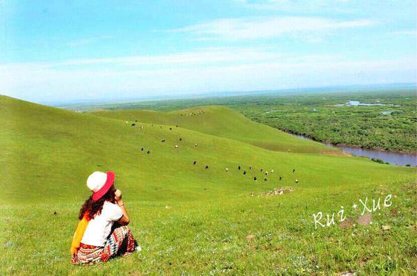 后记:游记终于完美收笔。真没想到,一路上坚持不懈的采风,点点滴滴的记录,经过近一周的整理完善和修改,居然洋洋洒洒地码了这么多字。在历时十天的出游经历中,我收获颇丰,心灵获得了前所未有的满足。呼伦贝尔的每一颗小草都见证了着我一路走来的愉快记忆,每一朵云都承载着我不愿离去的难舍情怀。在蓝天下,在碧草间,在河水旁,在牛羊哞哞咩咩欢叫声中,我和大草原的约会划上了完美的句号。 纯美朴实的草原带给我的不仅有视觉上的美感,更有心灵的震撼与升华,以至于在写作过程中,时常为自己拙劣的文笔、贫乏的词语积累感到羞愧。还请大家阅读中多多鉴谅!在此,谨以此拙文献给我的姐妹们,朋友们,献给美丽的呼伦贝尔!
